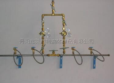 不銹鋼氣體匯流排是集中供氣體的一種設備。不銹鋼氣體匯流排由左右兩根匯流主管道組成,中間有四只高壓閥門,分別控制左右兩組匯流管,每組有相稱數目的分閥,軟管及卡具連接氣瓶,不銹鋼氣體匯流排的中間裝有一塊高壓表,用來檢測匯流管內的壓力,高壓閥門上方分別有兩組減壓器,以便控制調節使用壓力及流量,減壓器上方分別有兩只低壓閥門,用來控制兩排不銹鋼氣體匯流排切換時的低壓氣體。